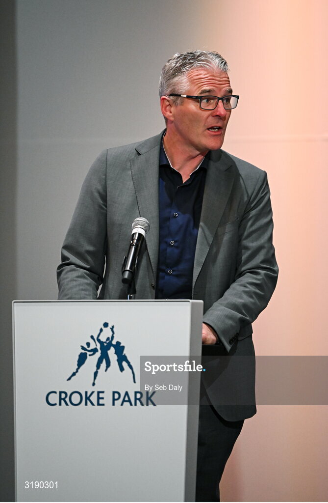 18 July 2025; Uachtarán Chumann Lúthchleas Gael Jarlath Burns during the GPA Hurling and Camogie Legends Lunch at Croke Park in Dublin. Photo by Seb Daly/Sportsfile