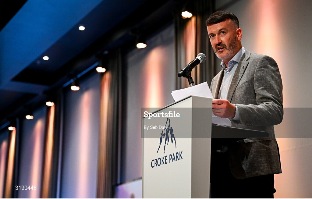 18 July 2025; GPA president Dónal Óg Cusack during the GPA Hurling and Camogie Legends Lunch at Croke Park in Dublin. Photo by Seb Daly/Sportsfile