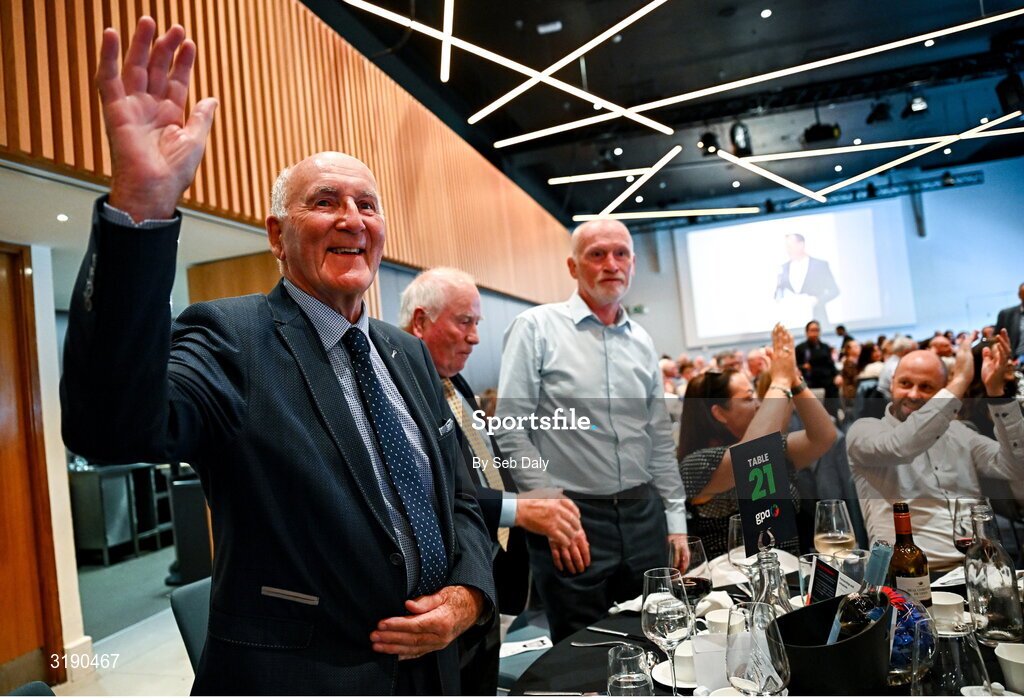 18 July 2025; Eddie Keher, left, and members of the 1975 Kilkenny team during the GPA Hurling and Camogie Legends Lunch at Croke Park in Dublin. Photo by Seb Daly/Sportsfile