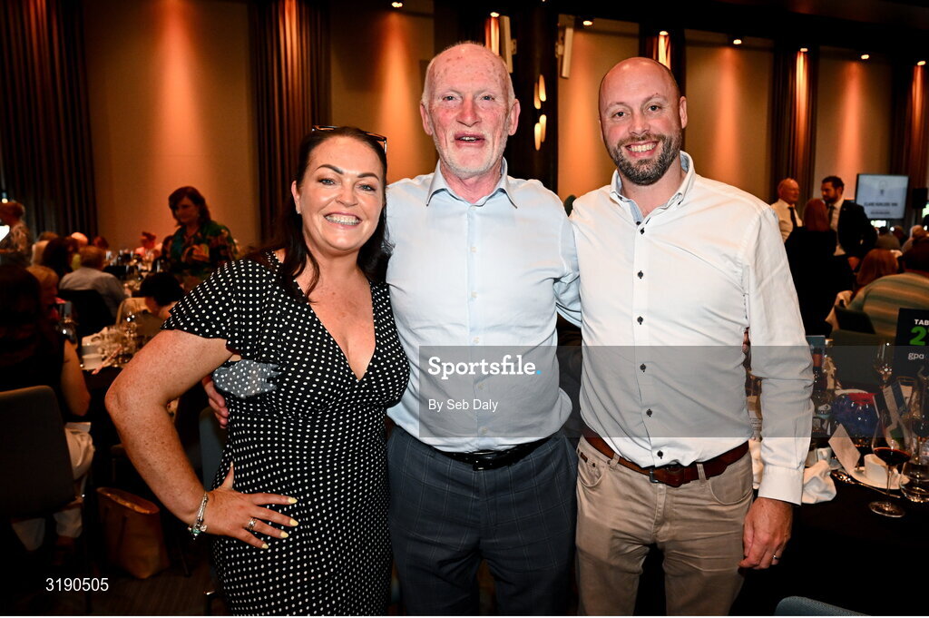 18 July 2025; Former Kilkenny hurler Tom McCormack, centre, with his daughter Aisling and son Alan during the GPA Hurling and Camogie Legends Lunch at Croke Park in Dublin. Photo by Seb Daly/Sportsfile