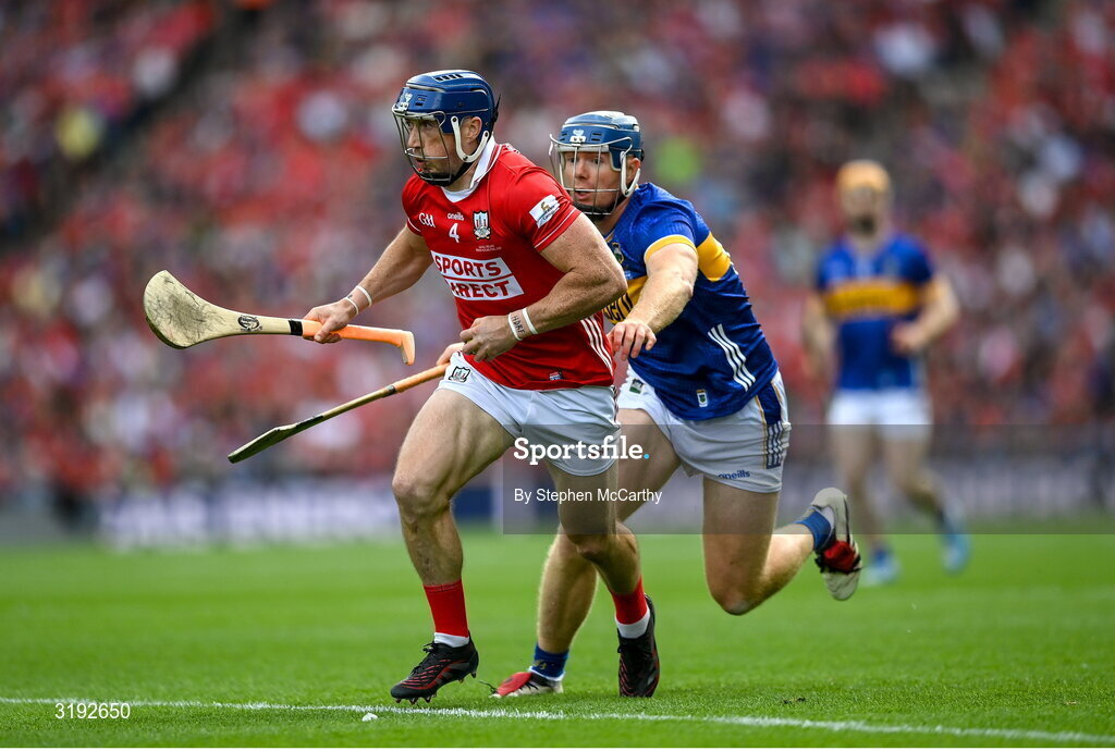 20 July 2025; Seán O'Donoghue of Cork in action against Jason Forde of Tipperary during the GAA Hurling All-Ireland Senior Championship final match between Cork and Tipperary at Croke Park in Dublin. Photo by Stephen McCarthy/Sportsfile