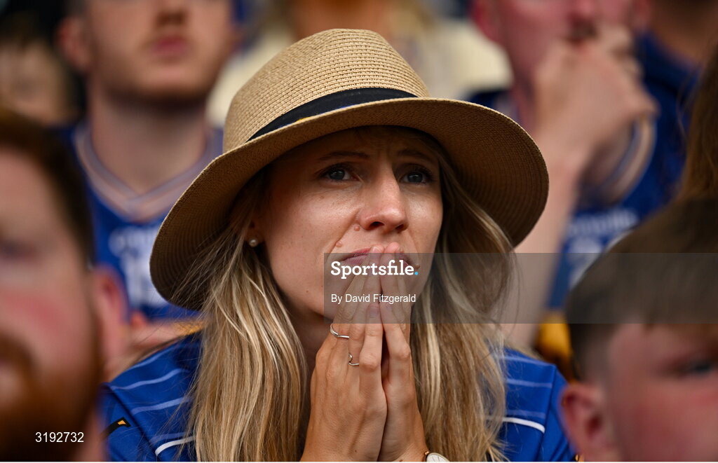 20 July 2025; A Tipperary supporter reacts during the GAA Hurling All-Ireland Senior Championship final match between Cork and Tipperary at Croke Park in Dublin. Photo by David Fitzgerald/Sportsfile