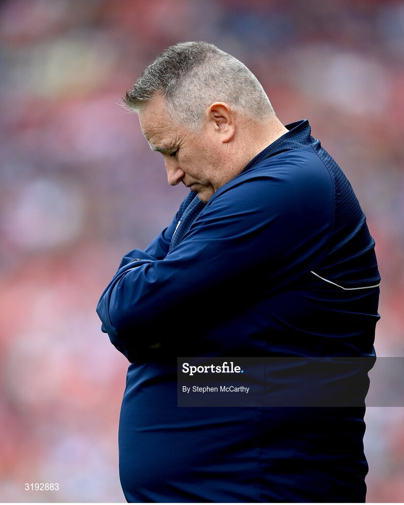 20 July 2025; Cork manager Pat Ryan reacts during the GAA Hurling All-Ireland Senior Championship final match between Cork and Tipperary at Croke Park in Dublin. Photo by Stephen McCarthy/Sportsfile