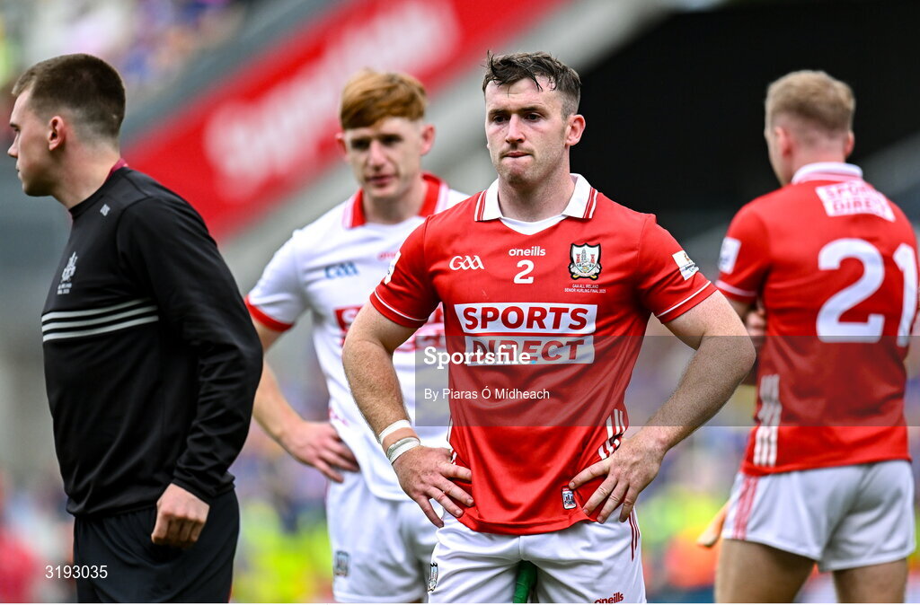 20 July 2025; Niall O'Leary of Cork after his side's defeat in the GAA Hurling All-Ireland Senior Championship final match between Cork and Tipperary at Croke Park in Dublin. Photo by Piaras Ó Mídheach/Sportsfile