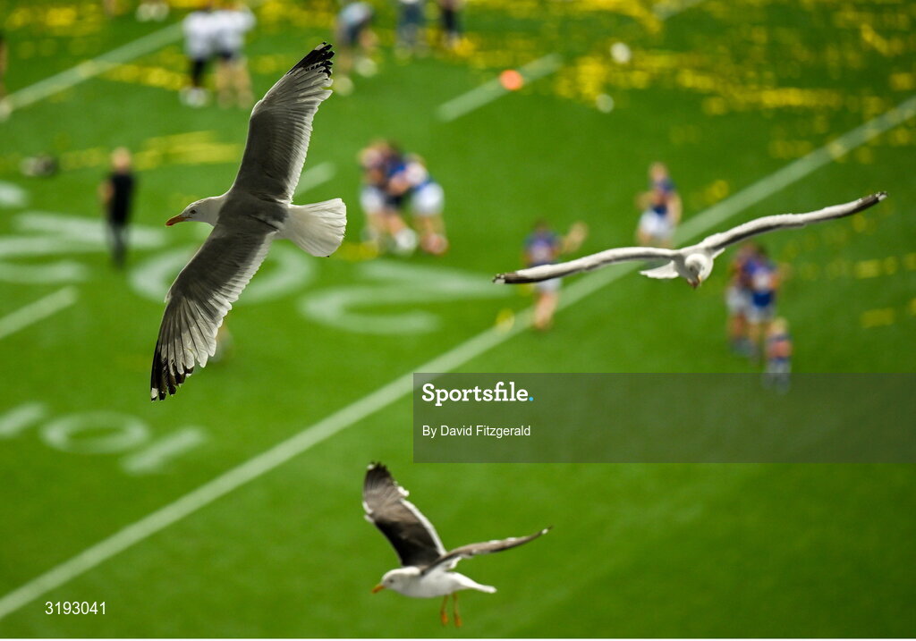 20 July 2025; Seagulls fly over as Tipperary players celebrate after the GAA Hurling All-Ireland Senior Championship final match between Cork and Tipperary at Croke Park in Dublin. Photo by David Fitzgerald/Sportsfile