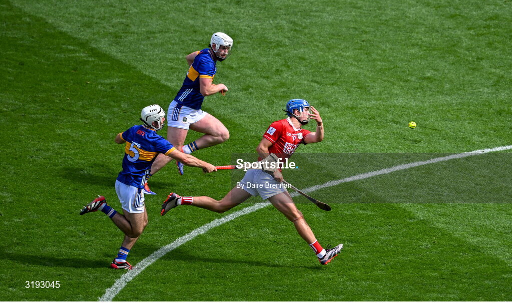 20 July 2025; Diarmuid Healy of Cork in action against Craig Morgan of Tipperary during the GAA Hurling All-Ireland Senior Championship final match between Cork and Tipperary at Croke Park in Dublin. Photo by Daire Brennan/Sportsfile