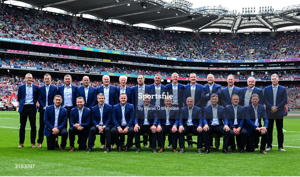 20 July 2025; The 2000 All-Ireland winning Kilkenny hurling jubilee team who were honoured before the GAA Hurling All-Ireland Senior Championship final match between Cork and Tipperary at Croke Park in Dublin. Photo by Piaras Ó Mídheach/Sportsfile