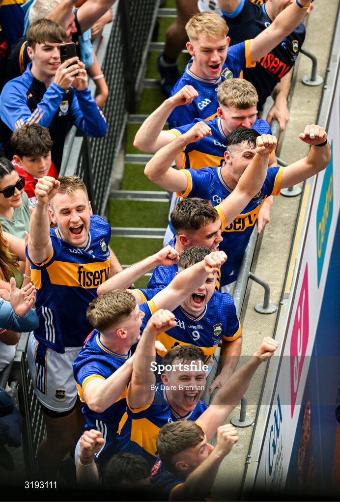 20 July 2025; Tipperary players watch captain Ronan Maher lift the Liam MacCarthy cup after the GAA Hurling All-Ireland Senior Championship final match between Cork and Tipperary at Croke Park in Dublin. Photo by Daire Brennan/Sportsfile