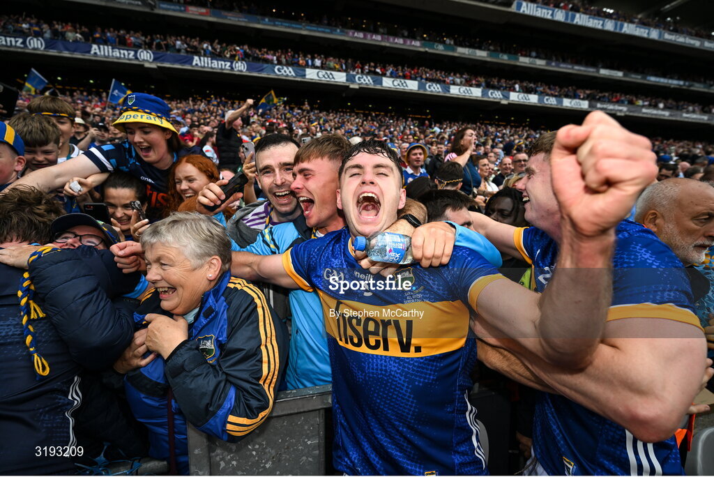 20 July 2025; Conor Stakelum of Tipperary celebrates with supporters after the GAA Hurling All-Ireland Senior Championship final match between Cork and Tipperary at Croke Park in Dublin. Photo by Stephen McCarthy/Sportsfile