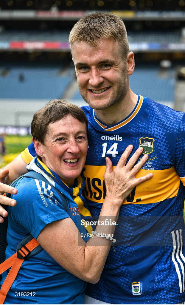 20 July 2025; John McGrath of Tipperary and his aunt Teresa O'Connell after the GAA Hurling All-Ireland Senior Championship final match between Cork and Tipperary at Croke Park in Dublin. Photo by Ray McManus/Sportsfile