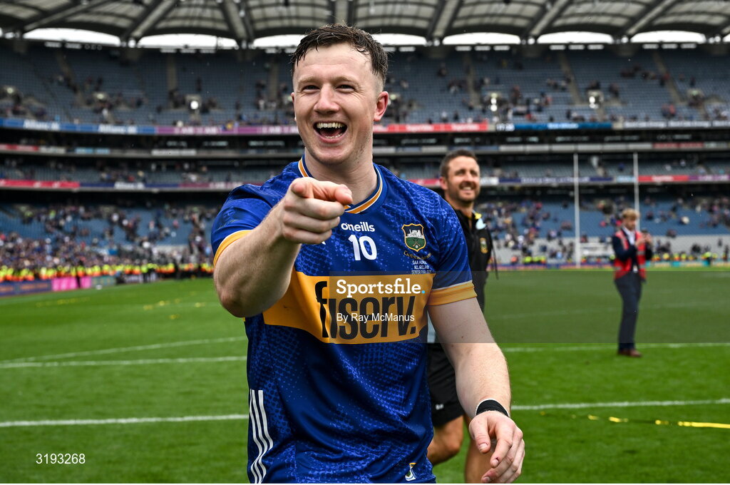 20 July 2025; Jake Morris of Tipperary celebrates after the GAA Hurling All-Ireland Senior Championship final match between Cork and Tipperary at Croke Park in Dublin. Photo by Ray McManus/Sportsfile