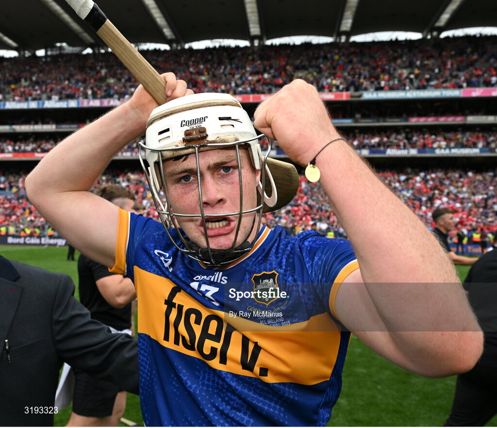 20 July 2025; Darragh McCarthy of Tipperary celebrates after the GAA Hurling All-Ireland Senior Championship final match between Cork and Tipperary at Croke Park in Dublin. Photo by Ray McManus/Sportsfile