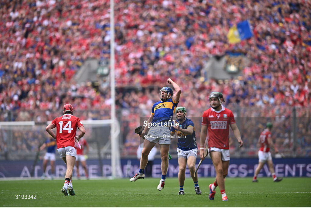 20 July 2025; Jason Forde, left, and Noel McGrath of Tipperary celebrates during the GAA Hurling All-Ireland Senior Championship final match between Cork and Tipperary at Croke Park in Dublin. Photo by Piaras Ó Mídheach/Sportsfile