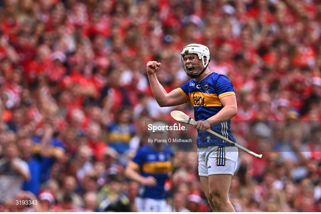 20 July 2025; Darragh McCarthy of Tipperary celebrates during the GAA Hurling All-Ireland Senior Championship final match between Cork and Tipperary at Croke Park in Dublin. Photo by Piaras Ó Mídheach/Sportsfile