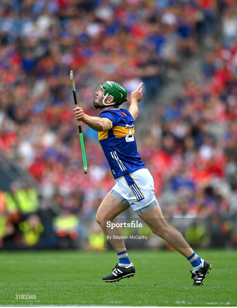 20 July 2025; Noel McGrath of Tipperary celebrates a late score during the GAA Hurling All-Ireland Senior Championship final match between Cork and Tipperary at Croke Park in Dublin. Photo by Stephen McCarthy/Sportsfile