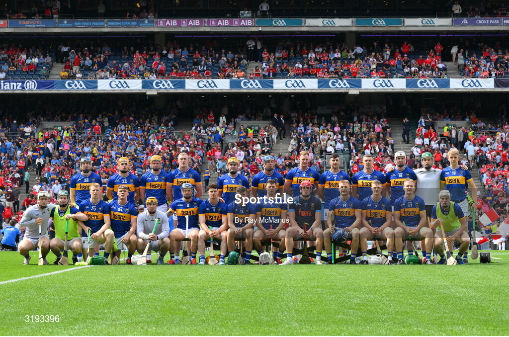 20 July 2025; The Tipperary squad before the GAA Hurling All-Ireland Senior Championship final match between Cork and Tipperary at Croke Park in Dublin. Photo by Ray McManus/Sportsfile