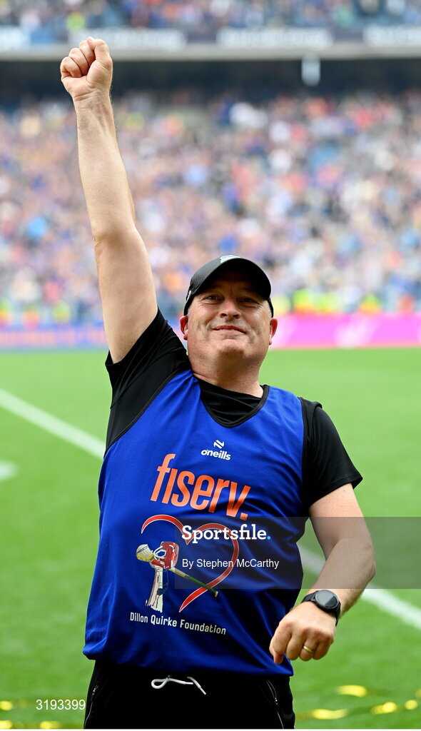 20 July 2025; Tipperary manager Liam Cahill celebrates after the GAA Hurling All-Ireland Senior Championship final match between Cork and Tipperary at Croke Park in Dublin. Photo by Stephen McCarthy/Sportsfile