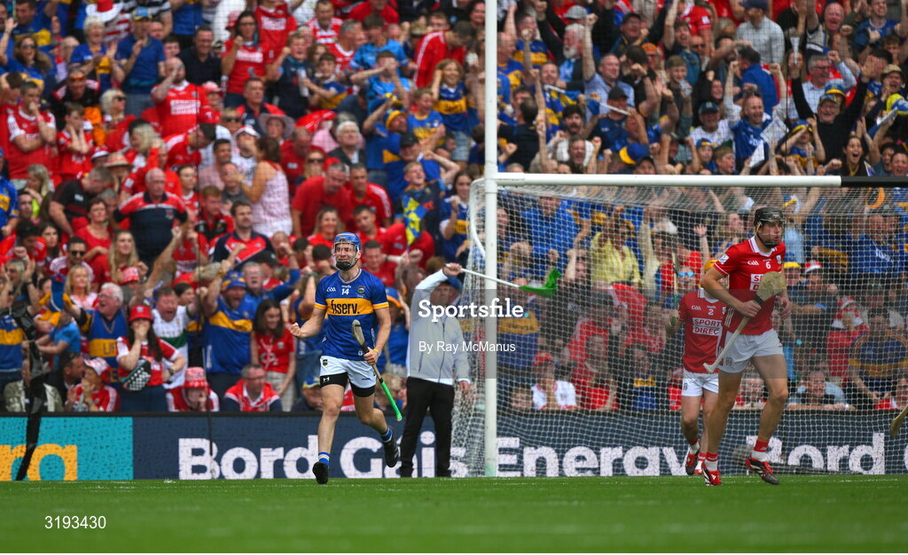 20 July 2025; John McGrath, 14, of Tipperary cebrates scoring his side's first goal, in the 46th minute, during the GAA Hurling All-Ireland Senior Championship final match between Cork and Tipperary at Croke Park in Dublin. Photo by Ray McManus/Sportsfile