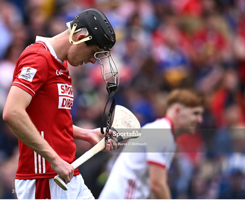 20 July 2025; Cork captain Robert Downey of Cork after his side's defeat in the GAA Hurling All-Ireland Senior Championship final match between Cork and Tipperary at Croke Park in Dublin. Photo by Piaras Ó Mídheach/Sportsfile