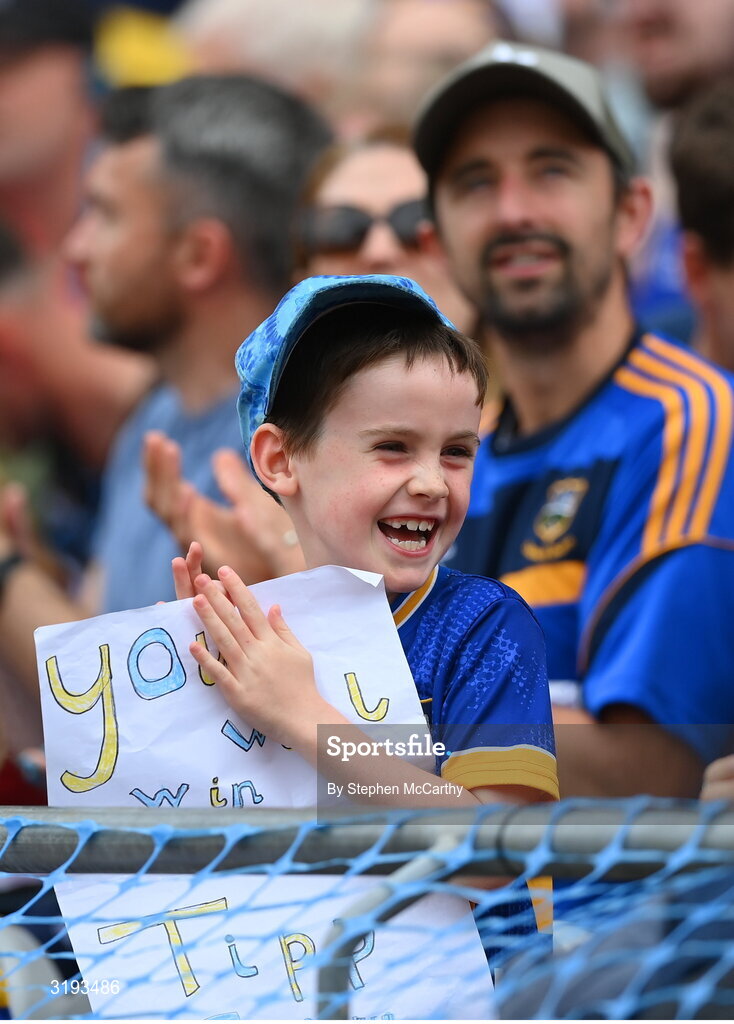 20 July 2025; A Tipperary supporter during the GAA Hurling All-Ireland Senior Championship final match between Cork and Tipperary at Croke Park in Dublin. Photo by Stephen McCarthy/Sportsfile