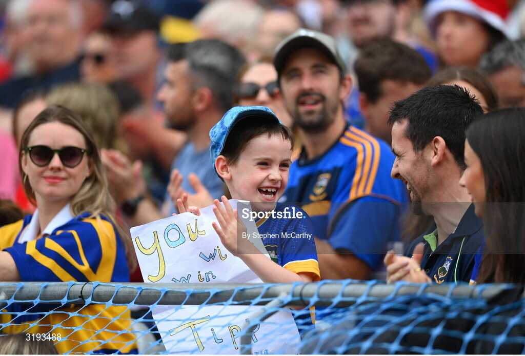 20 July 2025; A Tipperary supporter during the GAA Hurling All-Ireland Senior Championship final match between Cork and Tipperary at Croke Park in Dublin. Photo by Stephen McCarthy/Sportsfile