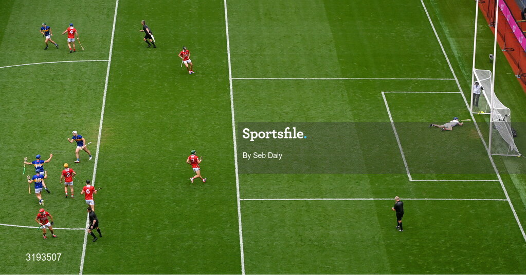 20 July 2025; Darragh McCarthy of Tipperary celebrates after scoring his side's second goal, from a penalty, during the GAA Hurling All-Ireland Senior Championship final match between Cork and Tipperary at Croke Park in Dublin. Photo by Seb Daly/Sportsfile