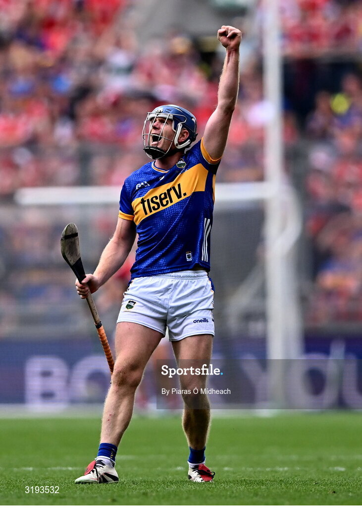 20 July 2025; Jason Forde of Tipperary celebrates during the GAA Hurling All-Ireland Senior Championship final match between Cork and Tipperary at Croke Park in Dublin. Photo by Piaras Ó Mídheach/Sportsfile