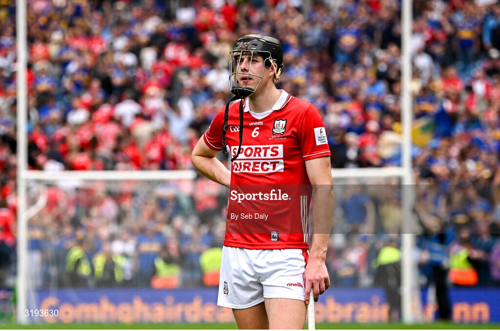 20 July 2025; Robert Downey of Cork after his side's defeat in the GAA Hurling All-Ireland Senior Championship final match between Cork and Tipperary at Croke Park in Dublin. Photo by Seb Daly/Sportsfile