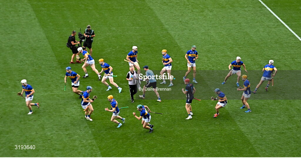 20 July 2025; The Tipperary team ahead of the GAA Hurling All-Ireland Senior Championship final match between Cork and Tipperary at Croke Park in Dublin. Photo by Daire Brennan/Sportsfile