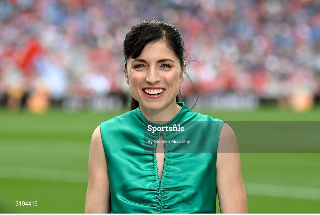 20 July 2025; RTÉ Sport presenter Joanne Cantwell before the GAA Hurling All-Ireland Senior Championship final match between Cork and Tipperary at Croke Park in Dublin. Photo by Stephen McCarthy/Sportsfile