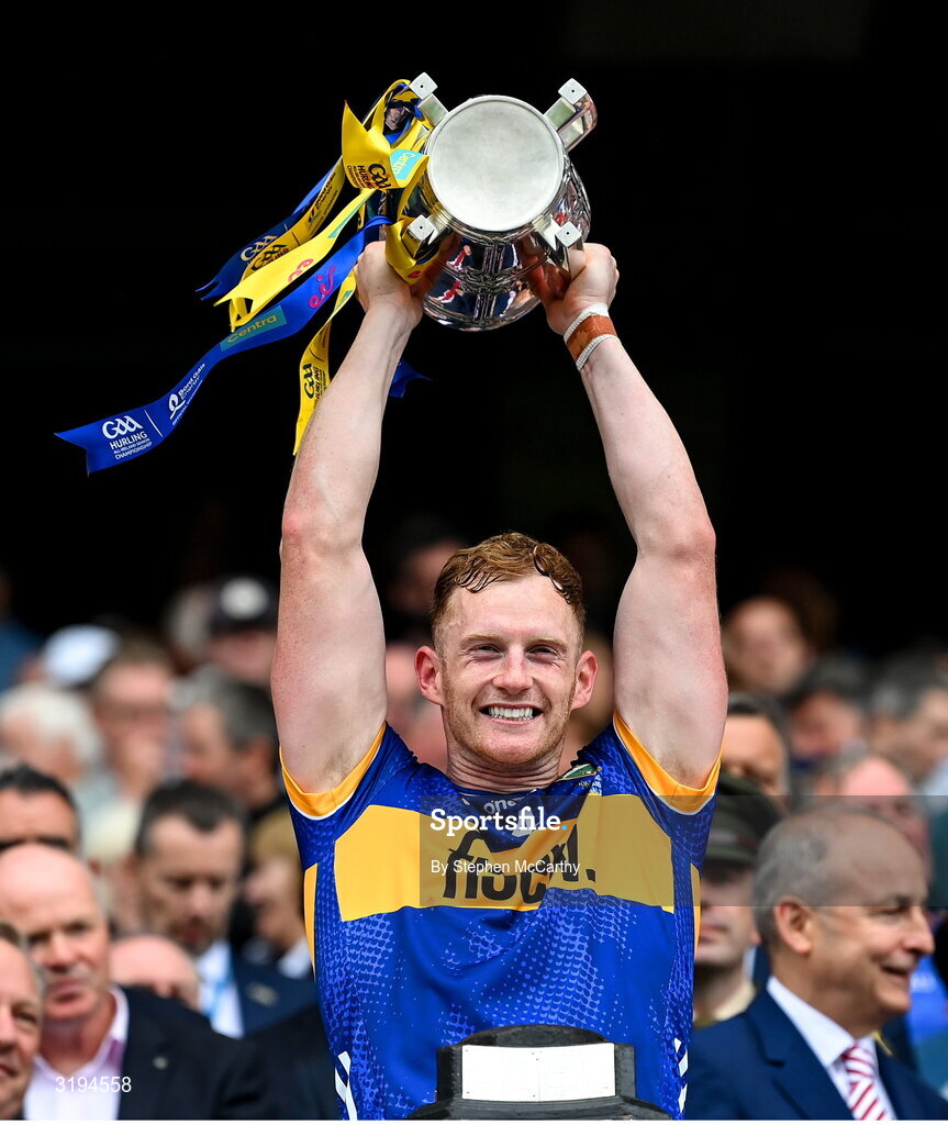 20 July 2025; Michael Breen of Tipperary lifts the Liam MacCarthy cup after victory in the GAA Hurling All-Ireland Senior Championship final match between Cork and Tipperary at Croke Park in Dublin. Photo by Stephen McCarthy/Sportsfile