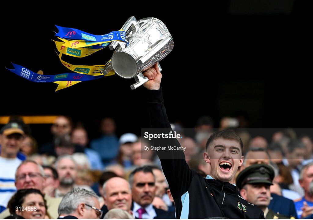 20 July 2025; Conor Martin of Tipperary lifts the Liam MacCarthy cup after victory in the GAA Hurling All-Ireland Senior Championship final match between Cork and Tipperary at Croke Park in Dublin. Photo by Stephen McCarthy/Sportsfile