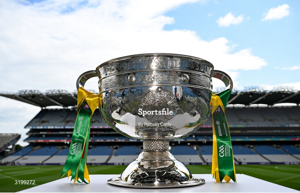 27 July 2025; A general view of the Sam Maguire trophy before the GAA Football All-Ireland Senior Championship final match between Kerry and Donegal at Croke Park in Dublin. Photo by Ramsey Cardy/Sportsfile