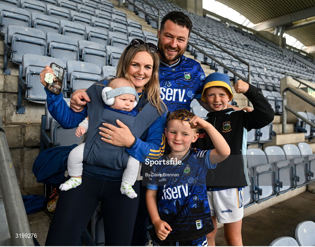 20 July 2025; The Crowe family, Emma, Paul, Darragh, aged 3 months, Cian, aged 5, and Ollie, aged 10, from Cappawhite, Co Tipperary, after the GAA Hurling All-Ireland Senior Championship final match between Cork and Tipperary at Croke Park in Dublin. Photo by Daire Brennan/Sportsfile Photo by Daire Brennan/Sportsfile