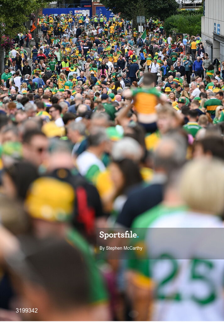 27 July 2025; Supporters on Jones' Road before the GAA Football All-Ireland Senior Championship final match between Kerry and Donegal at Croke Park in Dublin. Photo by Stephen McCarthy/Sportsfile