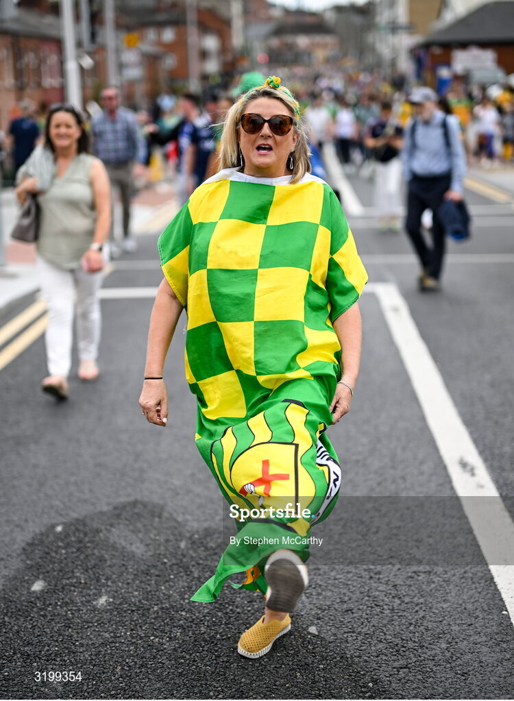 27 July 2025; Donegal supporter Bernie Doherty, from Buncrana, Donegal, before the GAA Football All-Ireland Senior Championship final match between Kerry and Donegal at Croke Park in Dublin. Photo by Stephen McCarthy/Sportsfile