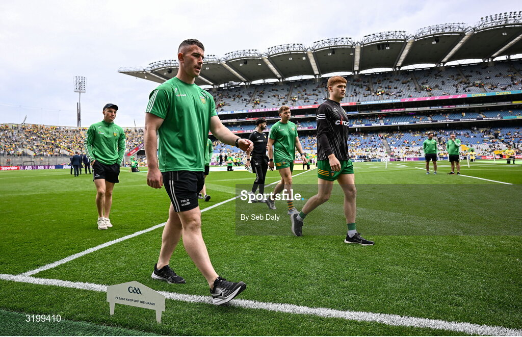 27 July 2025; Patrick McBrearty of Donegal and teammates walk the pitch before the GAA Football All-Ireland Senior Championship final match between Kerry and Donegal at Croke Park in Dublin. Photo by Seb Daly/Sportsfile
