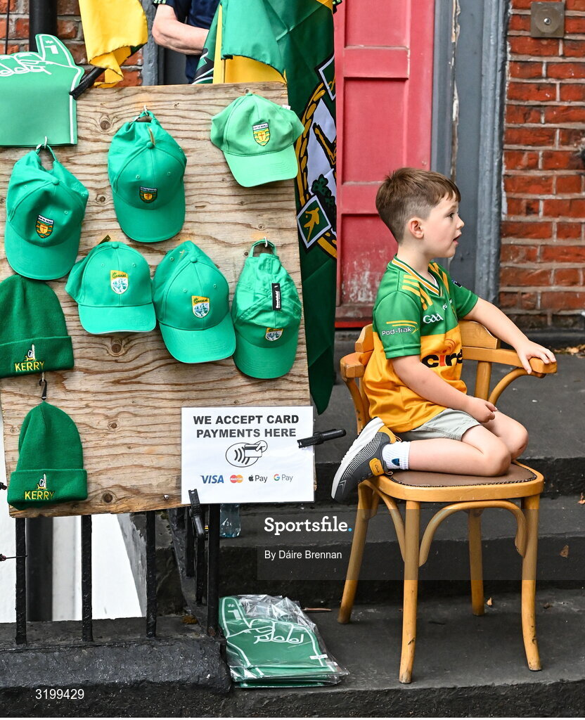27 July 2025; Donegal supporter John Pio, aged 5, from Glenswilly, Co Donegal, ahead of the GAA Football All-Ireland Senior Championship final match between Kerry and Donegal at Croke Park in Dublin. Photo by Daire Brennan/Sportsfile