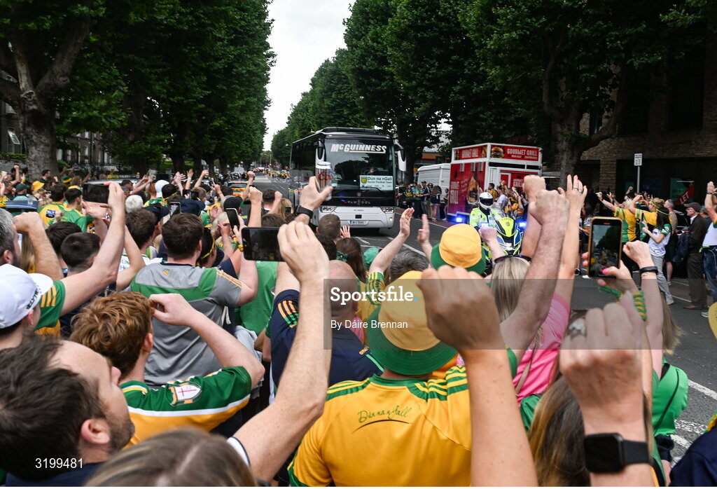 27 July 2025; The Donegal team bus on the North Circular Road ahead of the GAA Football All-Ireland Senior Championship final match between Kerry and Donegal at Croke Park in Dublin. Photo by Daire Brennan/Sportsfile