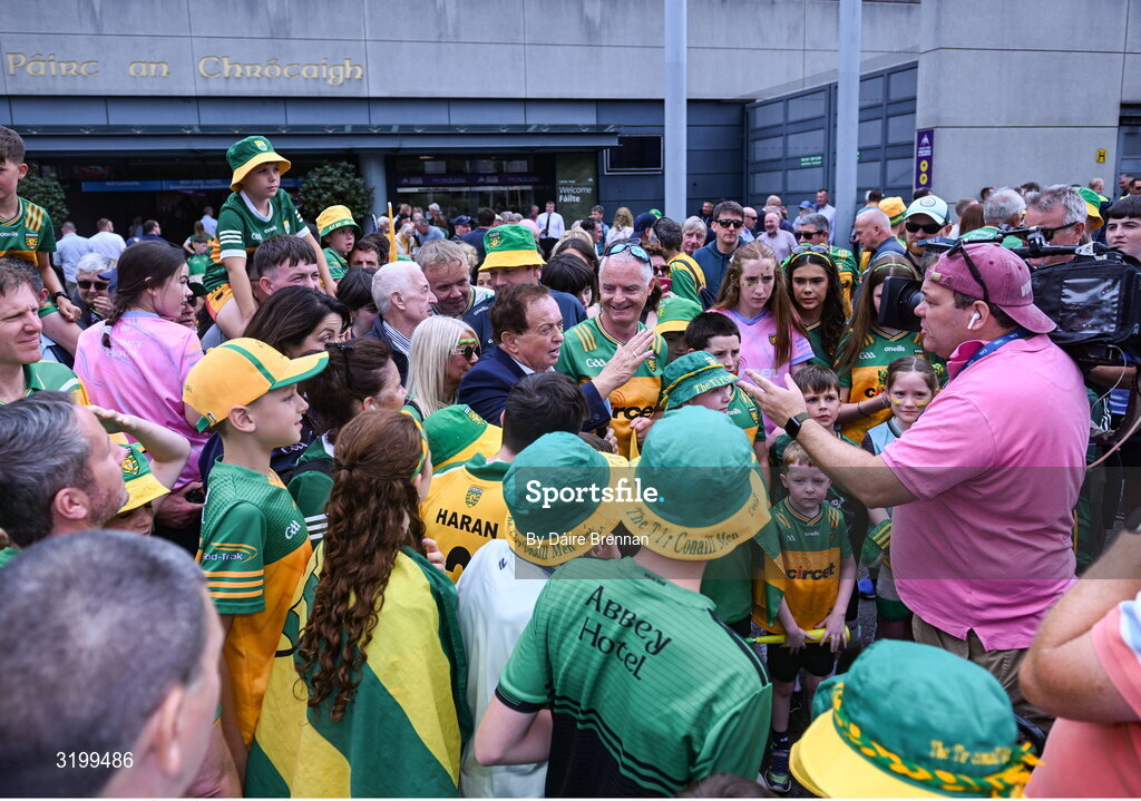 27 July 2025; Marty Morrissey of RTÉ does a report ahead of the GAA Football All-Ireland Senior Championship final match between Kerry and Donegal at Croke Park in Dublin. Photo by Daire Brennan/Sportsfile