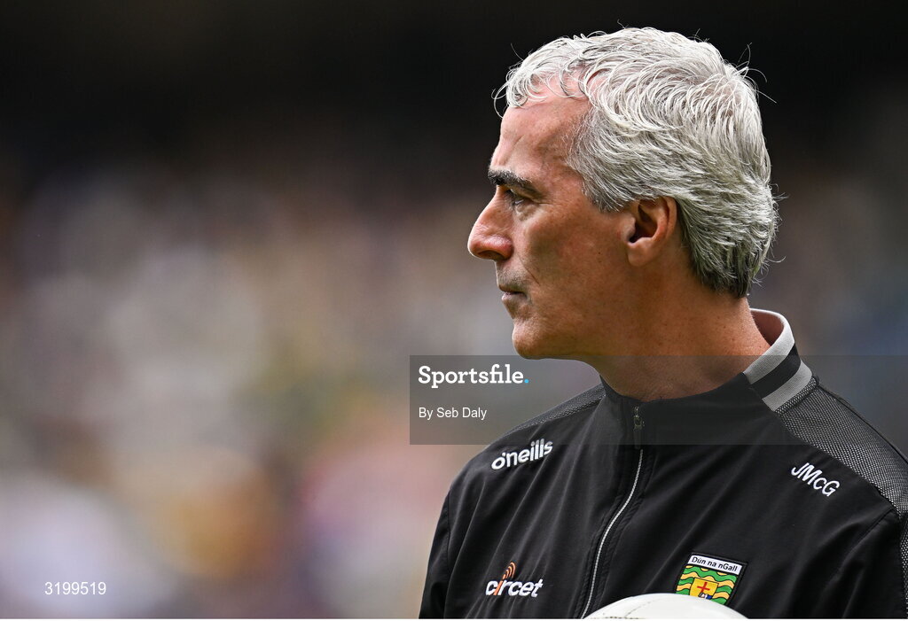 27 July 2025; Donegal manager Jim McGuinness before the GAA Football All-Ireland Senior Championship final match between Kerry and Donegal at Croke Park in Dublin. Photo by Seb Daly/Sportsfile
