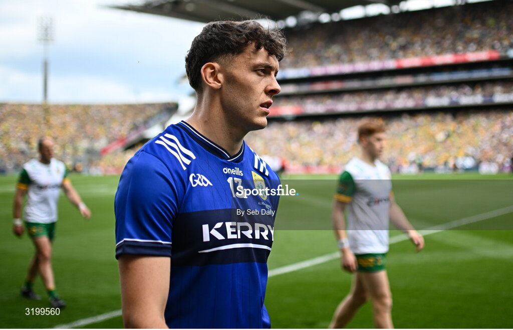 27 July 2025; David Clifford of Kerry during the parade before the GAA Football All-Ireland Senior Championship final match between Kerry and Donegal at Croke Park in Dublin. Photo by Seb Daly/Sportsfile