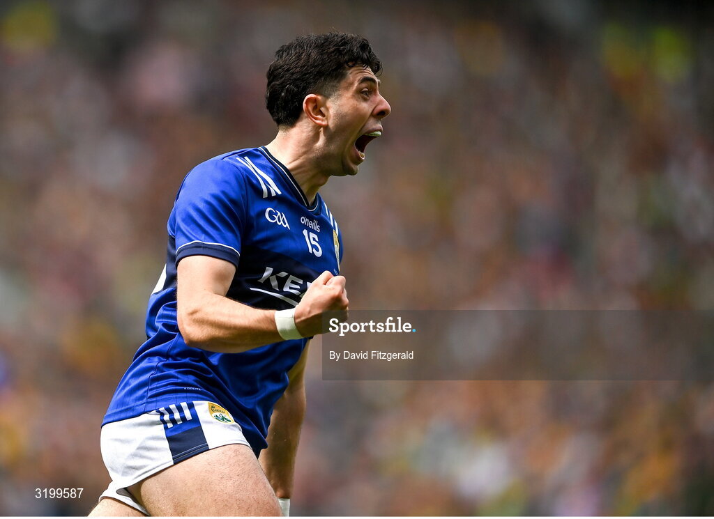 27 July 2025; Dylan Geaney of Kerry celebrates after scoring his side's point during the GAA Football All-Ireland Senior Championship final match between Kerry and Donegal at Croke Park in Dublin. Photo by David Fitzgerald/Sportsfile