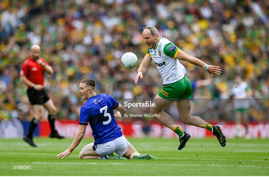 27 July 2025; Michael Murphy of Donegal in action against Jason Foley of Kerry during the GAA Football All-Ireland Senior Championship final match between Kerry and Donegal at Croke Park in Dublin. Photo by Stephen McCarthy/Sportsfile
