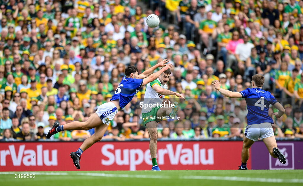 27 July 2025; Caolan McGonagle of Donegal in action against Mike Breen of Kerry during the GAA Football All-Ireland Senior Championship final match between Kerry and Donegal at Croke Park in Dublin. Photo by Stephen McCarthy/Sportsfile