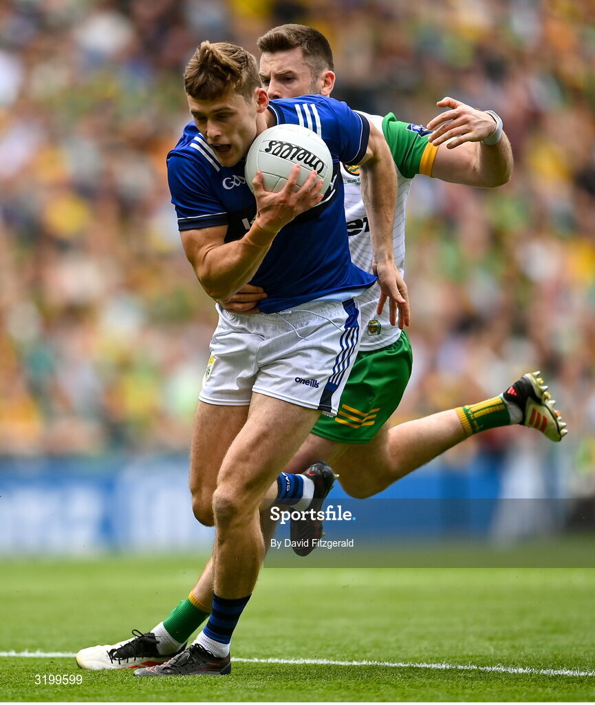 27 July 2025; Gavin White of Kerry in action against Eoghan Bán Gallagher of Donegal during the GAA Football All-Ireland Senior Championship final match between Kerry and Donegal at Croke Park in Dublin. Photo by David Fitzgerald/Sportsfile