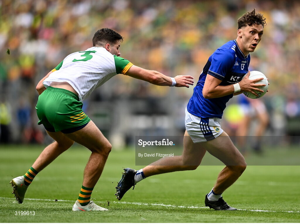 27 July 2025; David Clifford of Kerry in action against Brendan McCole of Donegal during the GAA Football All-Ireland Senior Championship final match between Kerry and Donegal at Croke Park in Dublin. Photo by David Fitzgerald/Sportsfile