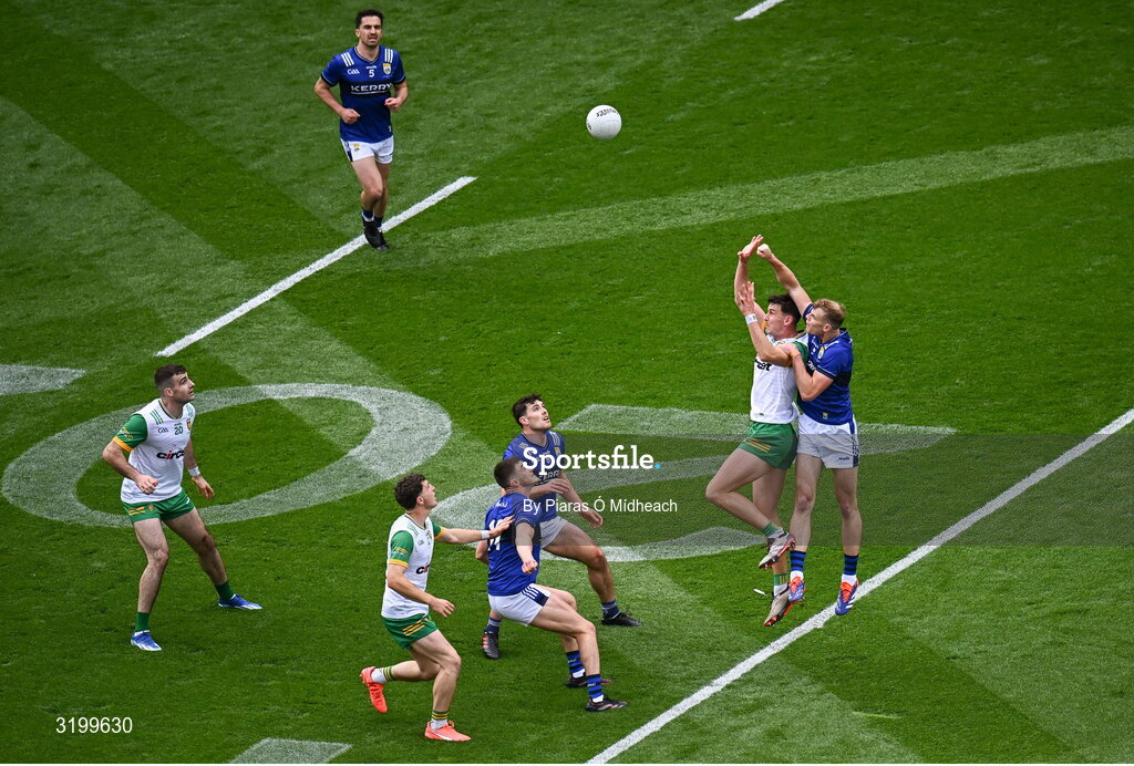 27 July 2025; Mark O'Shea of Kerry and Michael Langan of Donegal contest a kickout during the GAA Football All-Ireland Senior Championship final match between Kerry and Donegal at Croke Park in Dublin. Photo by Piaras Ó Mídheach/Sportsfile