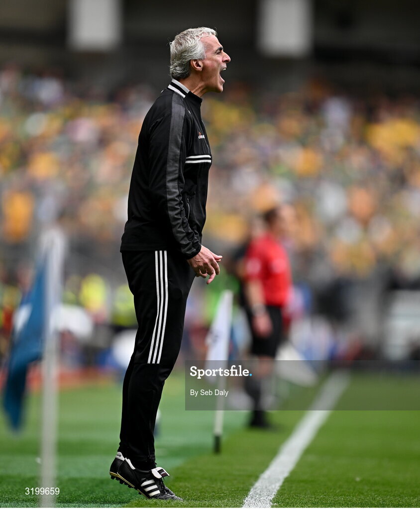 27 July 2025; Donegal manager Jim McGuinness during the GAA Football All-Ireland Senior Championship final match between Kerry and Donegal at Croke Park in Dublin. Photo by Seb Daly/Sportsfile