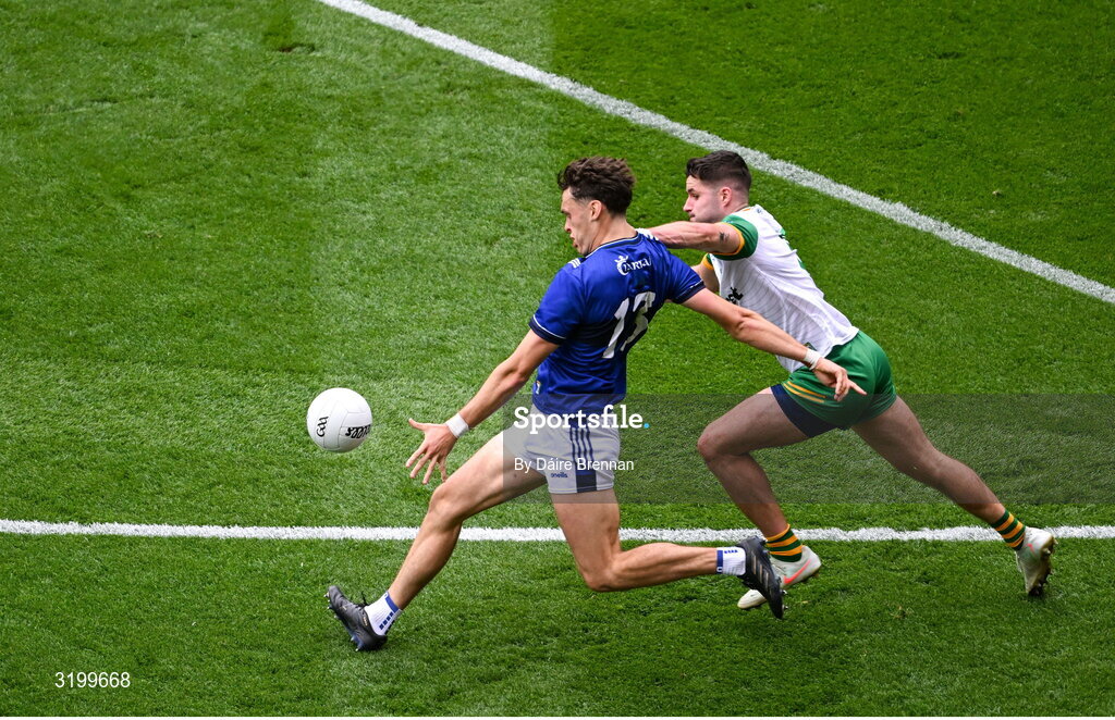 27 July 2025; David Clifford of Kerry kicks a score despite the efforts of Brendan McCole of Donegal during the GAA Football All-Ireland Senior Championship final match between Kerry and Donegal at Croke Park in Dublin. Photo by Dáire Brennan/Sportsfile